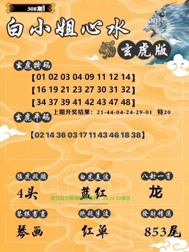 | 308期:两波中特【绿波-红波】开:兔39中 |